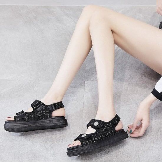 レディース ツイード サンダル 履きやすい 歩きやすい スポーツ コンフォート カジュアル ウェッジソール 普段履き 通気性 オープントゥ 動きやすい アウトドア スニーカー