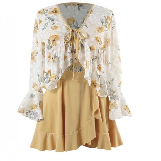 水着 タンキニ ワンピース型 レディース 大きいサイズ イエロー 体型カバー レース 日焼け対策 かわいい セクシー 胸パット 海水浴 海 プール デート トレンド 人気 韓国風 オルちゃん