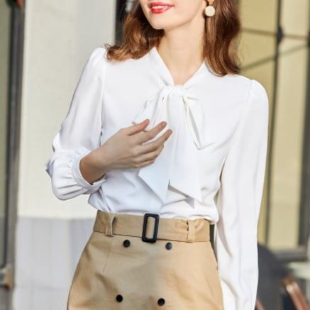 シャツ ブラウス シフォンブラウス ビジネス オフィス リボンタイ ブラウス ホワイトシャツ 長袖 パフスリーブ シャツきれいめ おしゃれ トップス シャツ ブラウス シフォンブラウス ビジネス