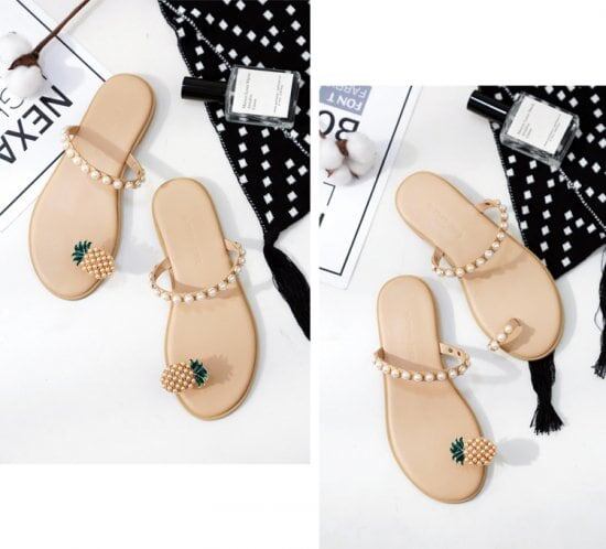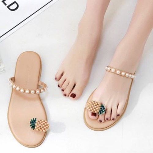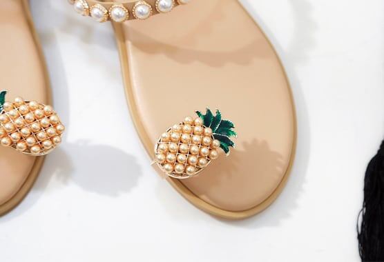 サンダル レディース ウエッジソール パイナップル パール 大人可愛い カジュアル ガーリー ビーチ リゾート 履きやすい ぺったんこ フラットサンダル アンクルストラップ