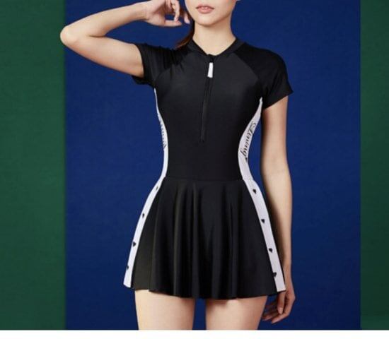 水着 ワンピース型 スポーティー レディース 大きいサイズ ブラック 体型カバー フィットネス マリンスポーツ ママ ジッパー プール 海水浴 可愛い 韓国風 オルちゃん 10代 20代 30代