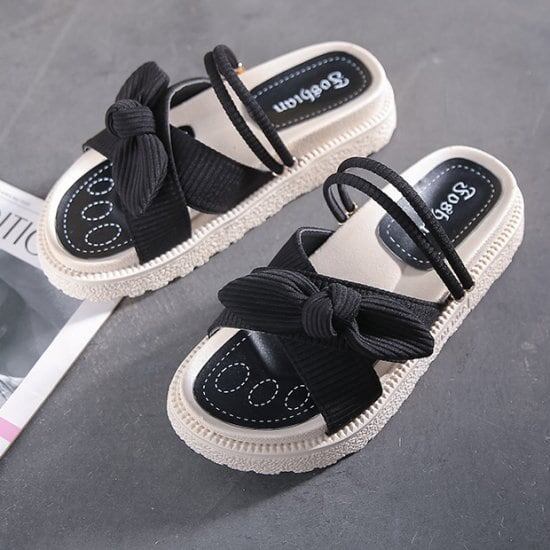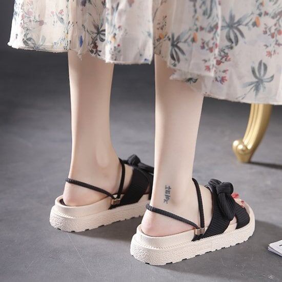 サンダル レディース 2way ストラップ コンフォートサンダル ストラップサンダル リボン 大人可愛い カジュアル ガーリー 履きやすい 通勤 オフィス ぺったんこ