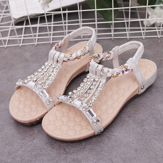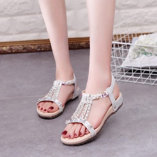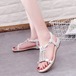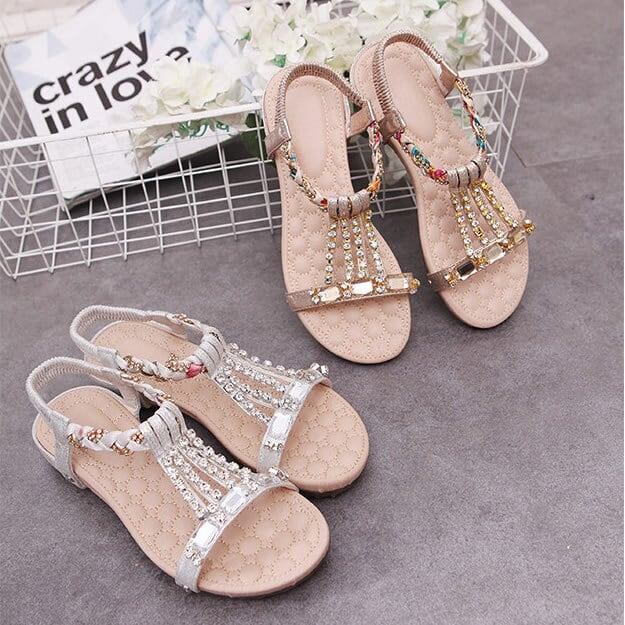 サンダル レディース キラキラ ウエッジソール PU ボヘミアン アンクルストラップ ビジュー 大人可愛い カジュアル ガーリー ビーチ リゾート 履きやすい ぺったんこ