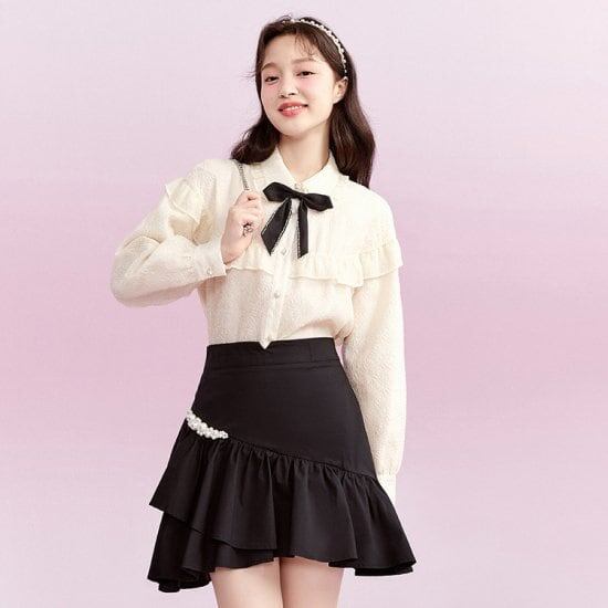 ブラウス シャツ レディース トップス 長袖 ラウンドカラー フリル 花柄 リボン 大人可愛い カジュアル シンプル きれいめ お出かけ 通勤 デート ベーシック レトロ