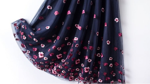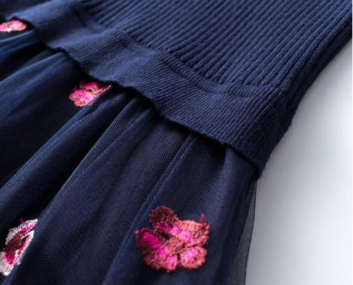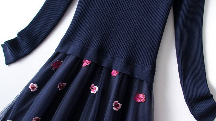 ドレス ニット ワンピース チュールスカート レース 可愛い レディース 大きいサイズ ネイビー 花柄 Aライン ミモレ丈 あったか素材 着痩せ 秋冬 韓国風 オルチャン 10代 20代 30代