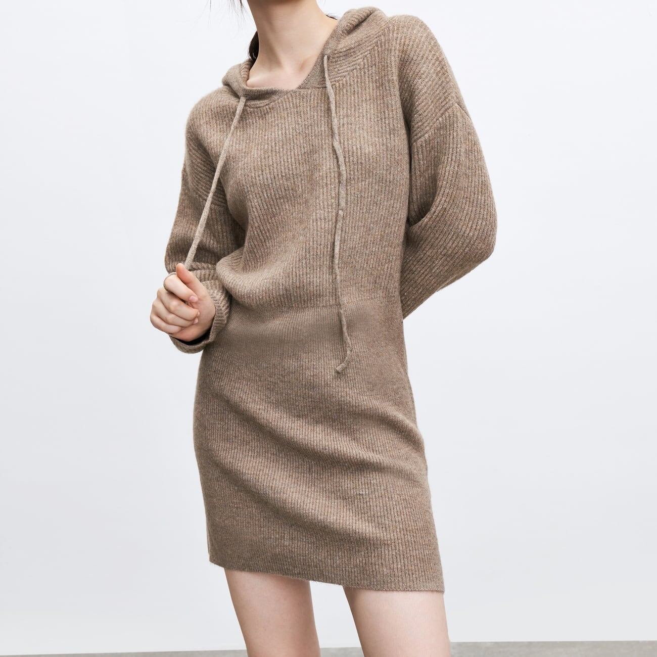 ワンピース ニット ミニ丈 長袖 ワンピ フード付き ニットワンピ ショート丈 大人可愛い カジュアル きれいめ お出かけ 通勤 デート 女子会 レディース 上品 通学 Iライン