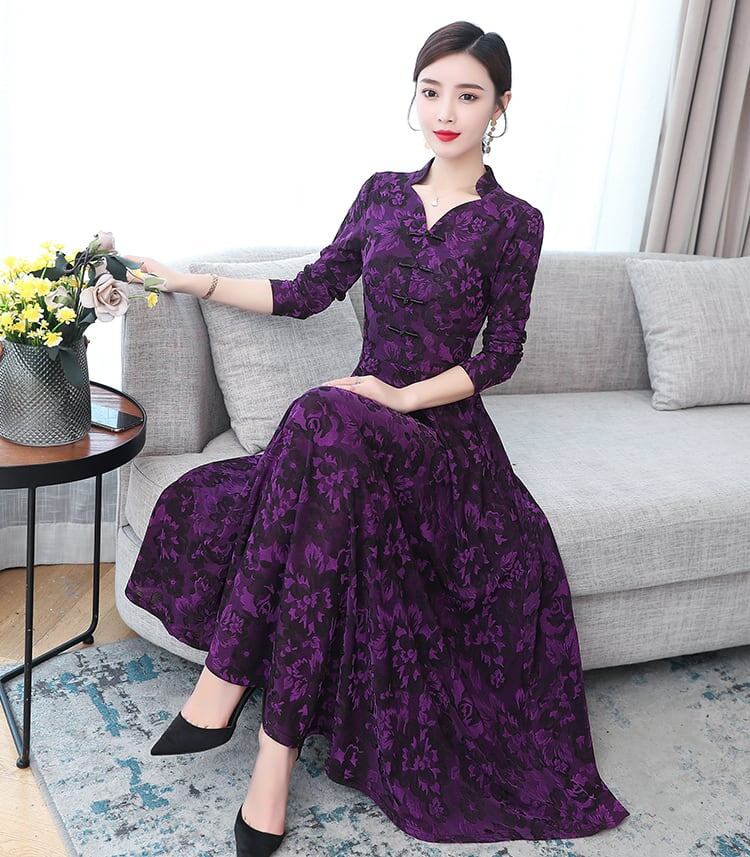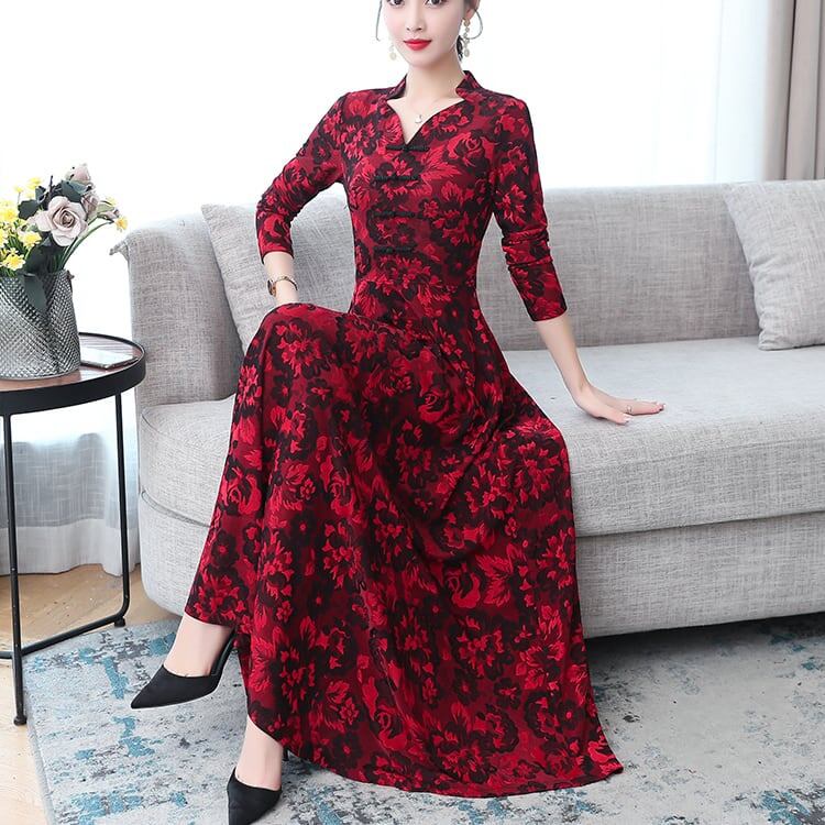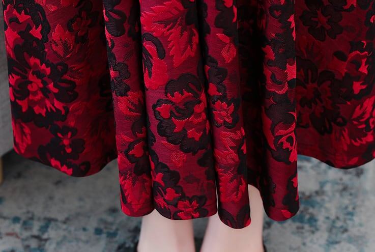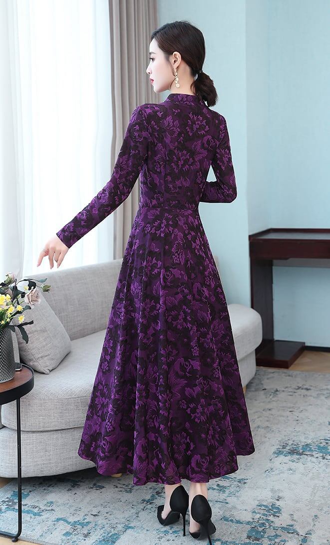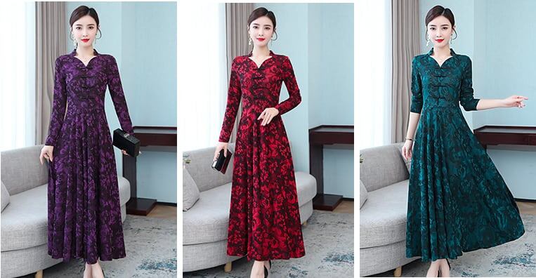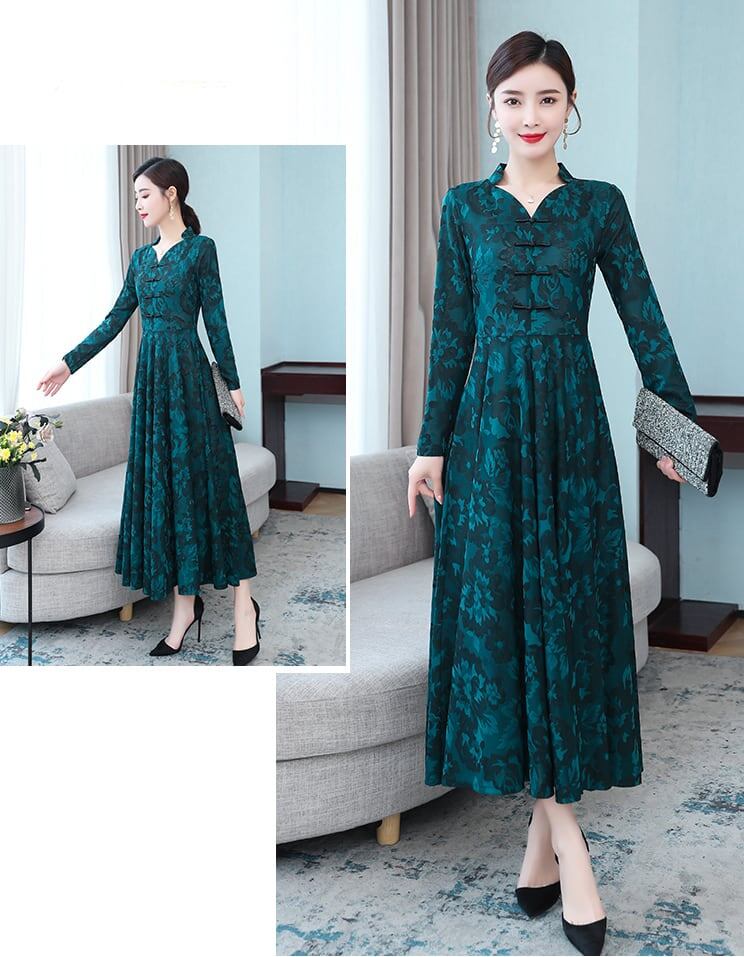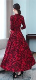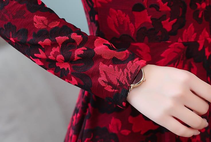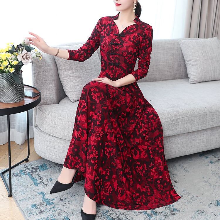 ワンピース ミモレ丈 長袖 Vネック 刺繍 花柄 裏起毛 防寒 大きいサイズ 大人可愛い カジュアル きれいめ お出かけ デート 女子会 お出かけ レディース 上品 Aライン