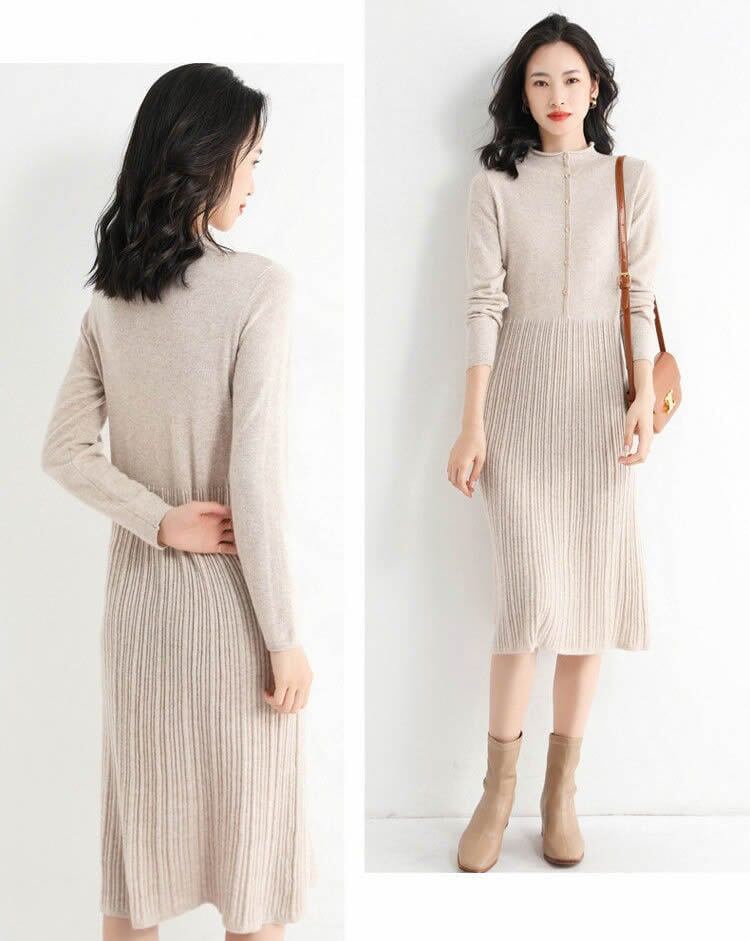 ワンピース ニット ひざ下丈 長袖 ワンピ ニットワンピ 大人可愛い カジュアル きれいめ お出かけ 通勤 デート 女子会 レディース 上品 通学 Aライン 大きいサイズ