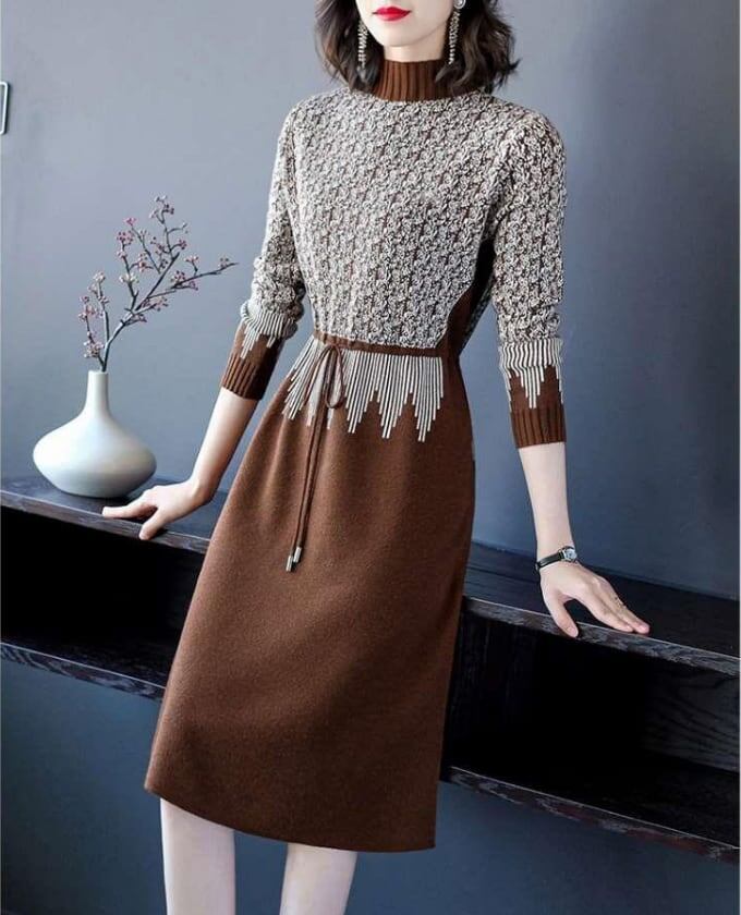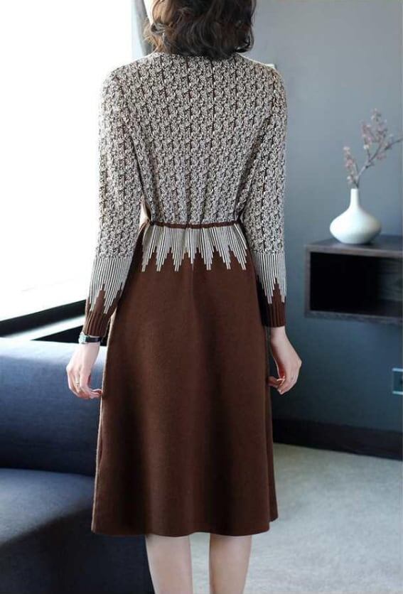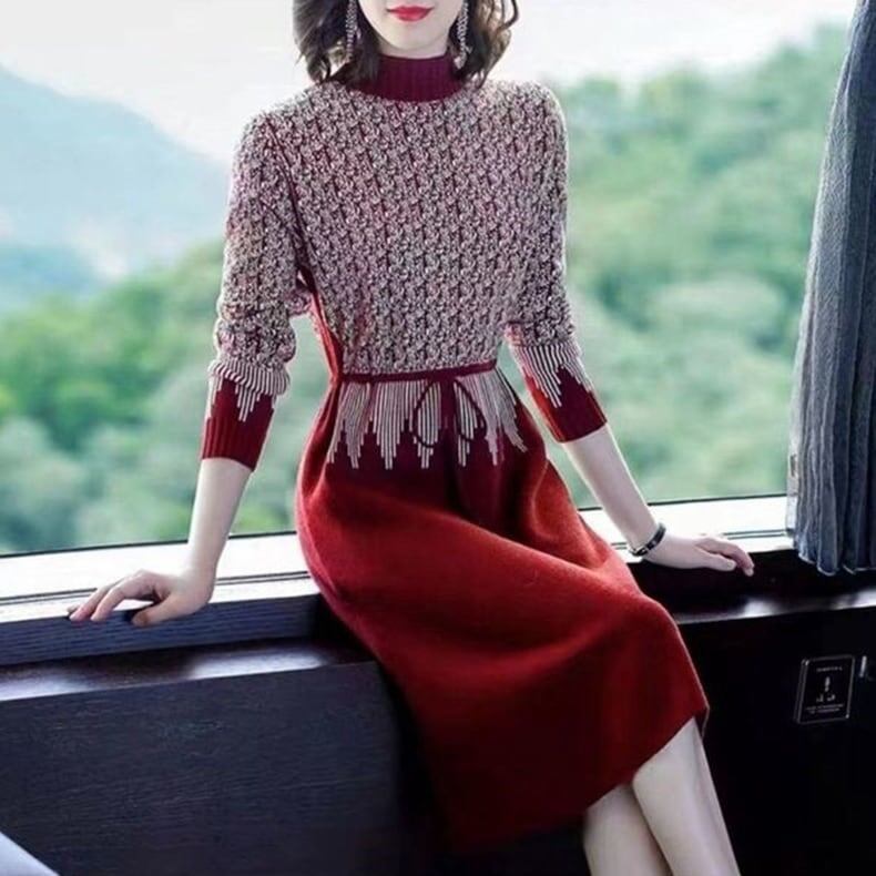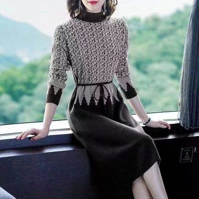 ワンピース ニット ひざ下丈 長袖 無地 大人可愛い カジュアル ガーリー お出かけ 通勤 デート 女子会 重ね着風 レディース ニットワンピース 上品 通学