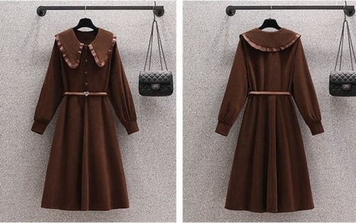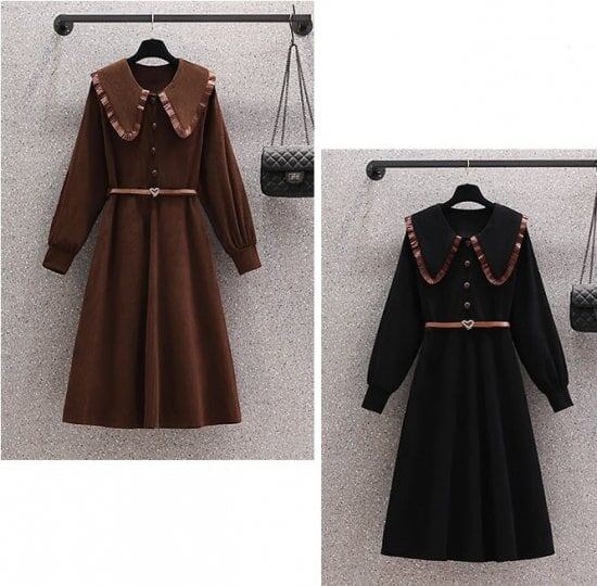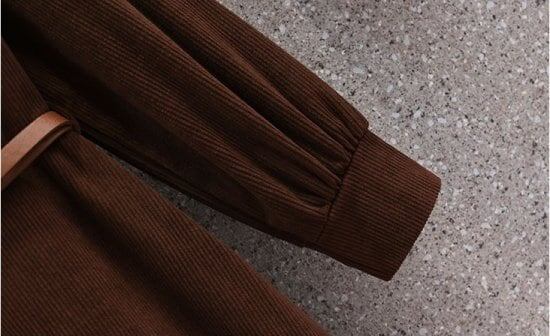 ワンピース レディース ひざ丈 長袖 コーディロイ風 ベルト付き ワンピ Aライン 大人可愛い カジュアル ガーリー 上品 お出かけ デート 女子会 通勤 通学 ハイウエスト