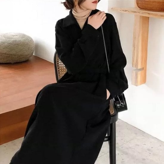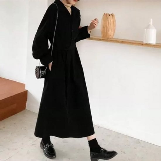 ワンピース シャツワンピース レディース ミモレ丈 Vネック 長袖 ワンピ 無地 Aライン 大人可愛い フォーマル きれいめ 上品 お出かけ デート 女子会 通勤 通学 ハイウエスト