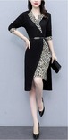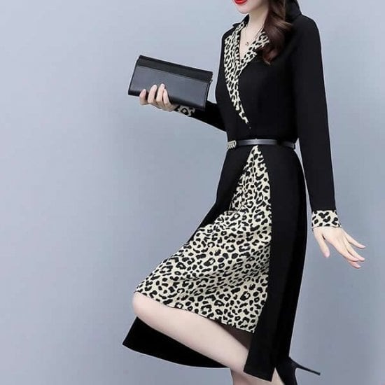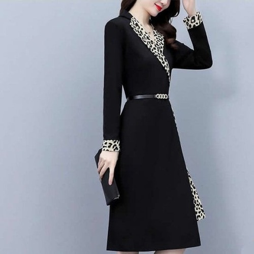 ワンピース レディース ひざ丈 長袖 Vネック ワンピ レオパード柄 Aライン 大きいサイズ 大人可愛い フォーマル きれいめ 上品 お出かけ デート 女子会 通勤 通学 ハイウエスト