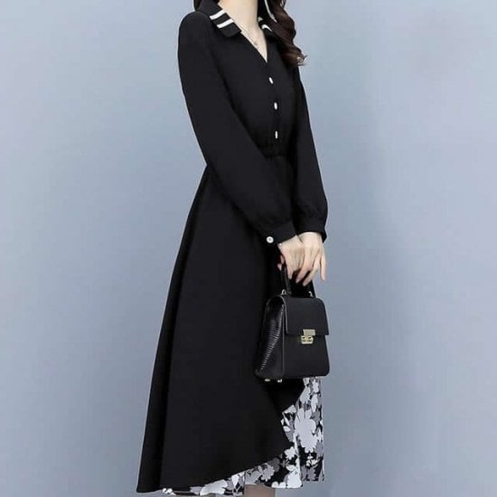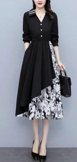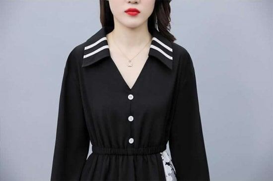 ワンピース レディース ひざ丈 長袖 Vネック ワンピ 花柄 Aライン 大きいサイズ 大人可愛い フォーマル きれいめ 上品 お出かけ デート 女子会 通勤 通学 ハイウエスト