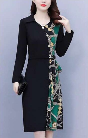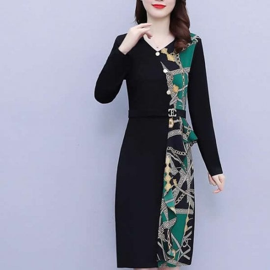 ワンピース レディース ひざ丈 Vネック 長袖 ワンピ 無地 異素材 Iライン 大きいサイズ 大人可愛い フォーマル きれいめ 上品 お出かけ デート 女子会 通勤 通学