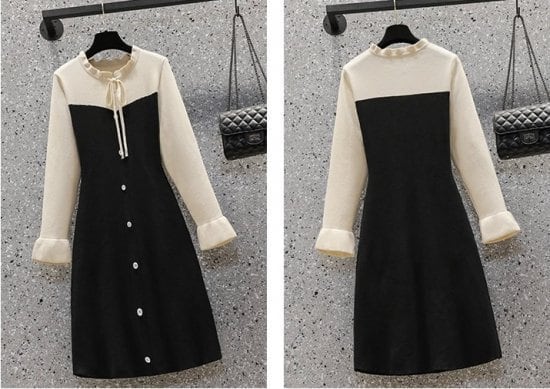 ワンピース レディース ひざ丈 リボンタイ 長袖 ワンピ ニット Aライン 大きいサイス 大人可愛い カジュアル ガーリー 上品 お出かけ デート 女子会 通勤 通学