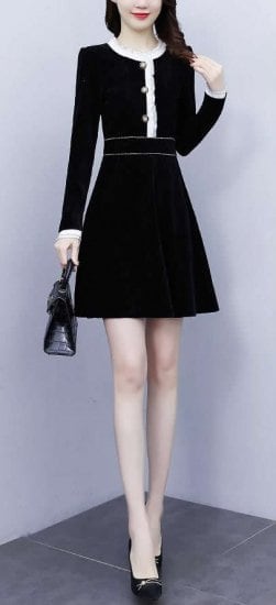 ワンピース レディース ミニ丈 ショート 長袖 ワンピ 無地 ベルベット Aライン 大きいサイズ 大人可愛い フォーマル きれいめ 上品 お出かけ デート 女子会 通勤 通学