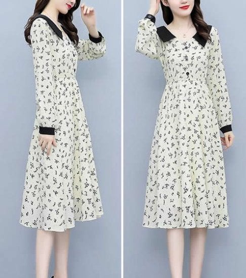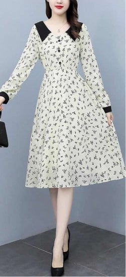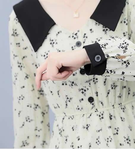 ワンピース レディース ひざ丈 長袖 ワンピ 花柄 Aライン 大きいサイズ 大人可愛い フォーマル きれいめ 上品 お出かけ デート 女子会 通勤 通学 ハイウエスト