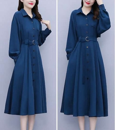ワンピース シャツワンピース レディース ひざ丈 長袖 ワンピ 無地 大きいサイズ 大人可愛い フォーマル きれいめ 上品 お出かけ デート 女子会 通勤 通学