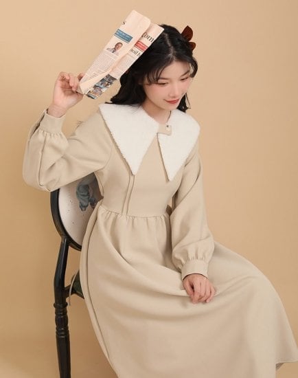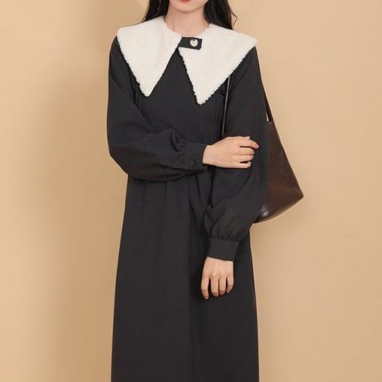 ワンピース レディース ミモレ丈 長袖 ワンピ 無地 Aライン フレア 大人可愛い カジュアル ガーリー 上品 お出かけ デート 女子会 通勤 通学 ハイウエスト レトロ