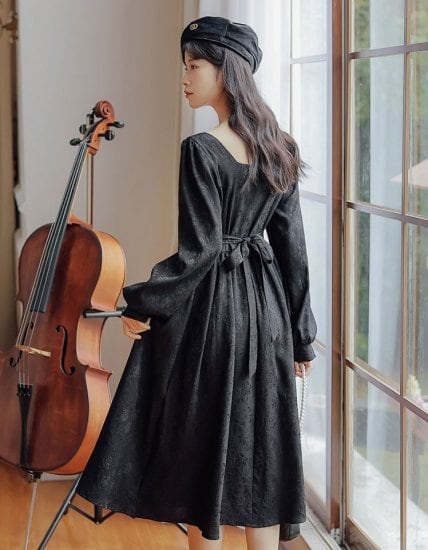 ワンピース レディース ひざ丈 スクエアネック 長袖 ワンピ 花柄 刺繍 Aライン 大人可愛い カジュアル ガーリー 上品 お出かけ デート 女子会 通勤 通学 ハイウエスト