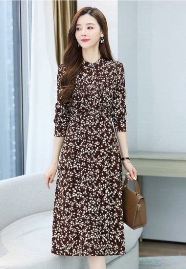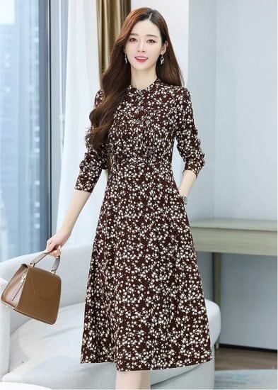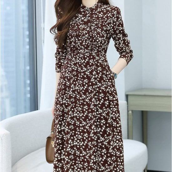 ワンピース 膝丈 長袖 ワンピ 花柄 Aライン 大人可愛い カジュアル きれいめ お出かけ 通勤 デート 女子会 レディース 上品 通学 ハイウエスト レトロ