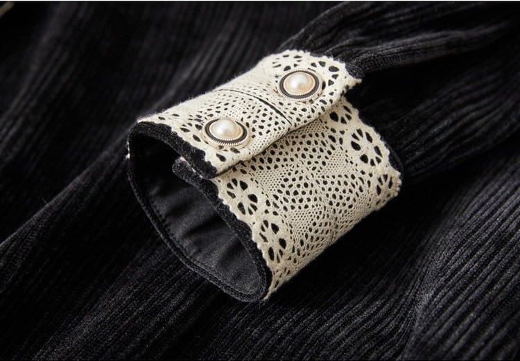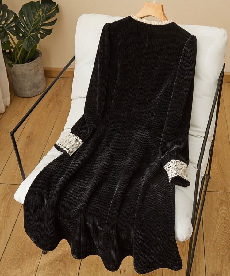 ワンピース 膝丈 レトロ レディース 大きいサイズ フェミニン Aライン ベロア 可愛い 上品 ドレス 二次会 お呼ばれ レース デート 10代 20代 30代 秋 冬 韓国風 オルちゃん トレンド