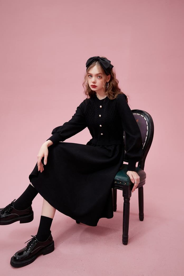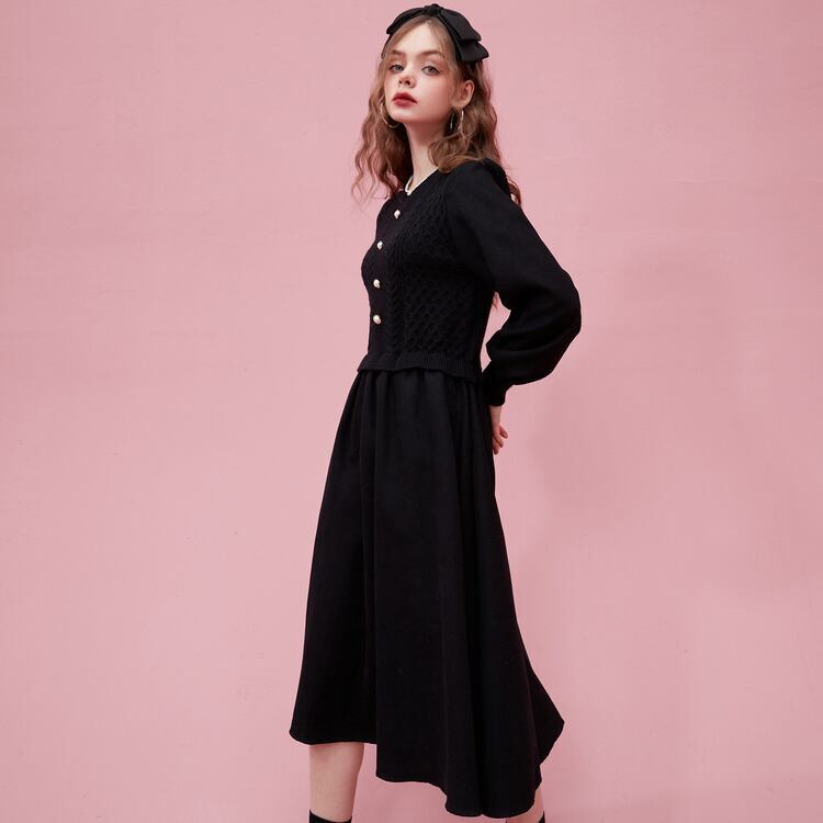ワンピース ニット ひざ下丈 長袖 無地 大人可愛い カジュアル ガーリー お出かけ 通勤 デート 女子会 重ね着風 レディース ニットワンピース 上品 通学