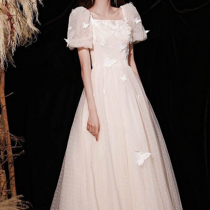 ロングドレス イブニングドレス パーティ マキシ丈 蝶々 半袖 Aライン 透け感 大きいサイズ レディース エレガント 華やか 上品 発表会 演奏会 パーティー お呼ばれ 結婚式
