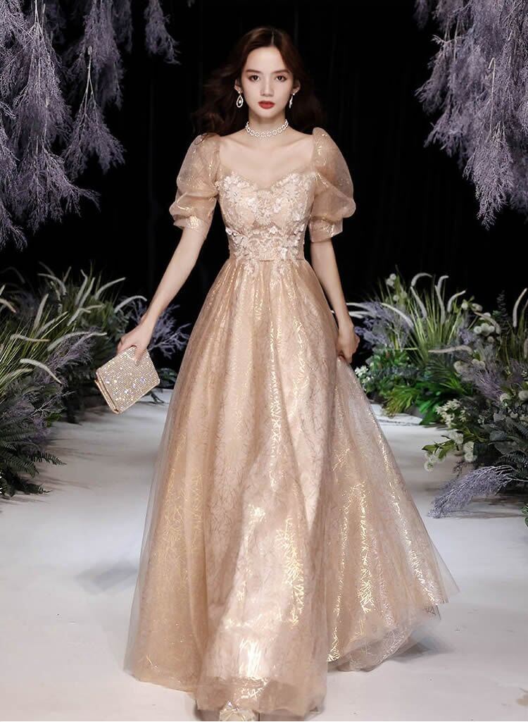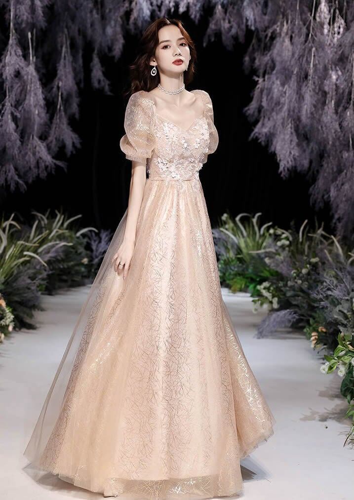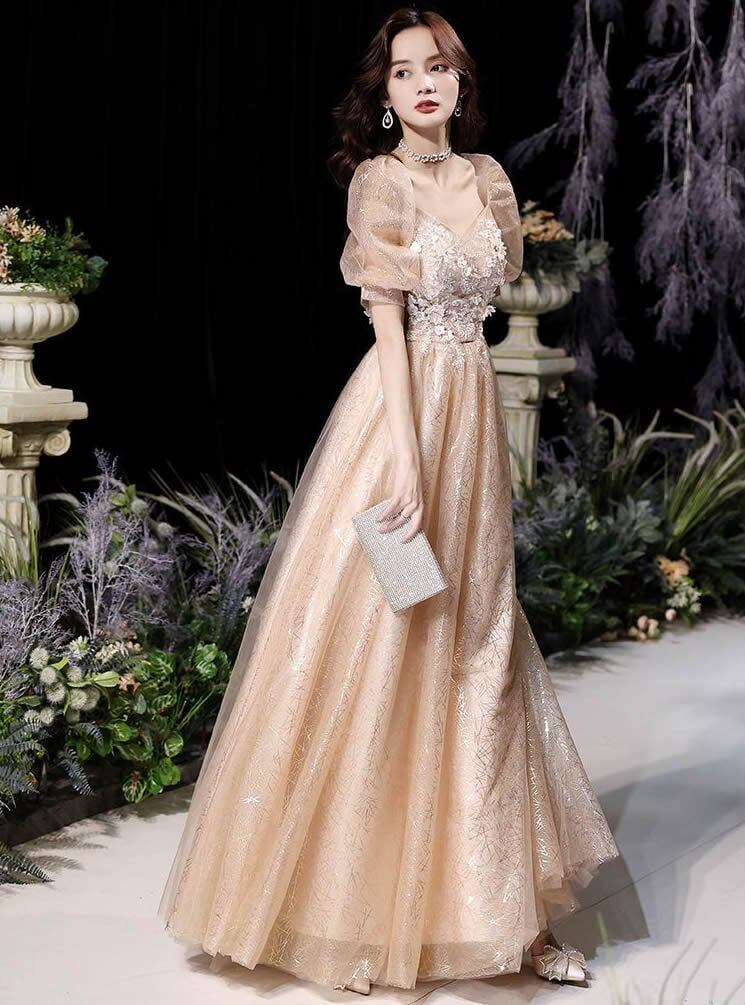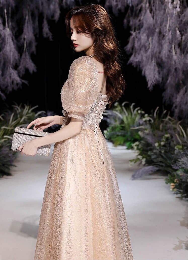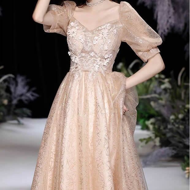 ロングドレス イブニングドレス パーティ マキシ丈 五分袖 キラキラ 花刺繍 Aライン大きいサイズ レディース エレガント 華やか 上品 発表会 演奏会 パーティー お呼ばれ 結婚式