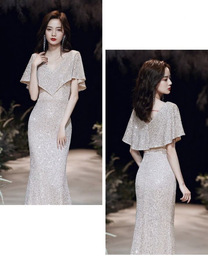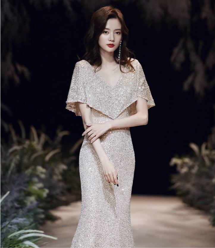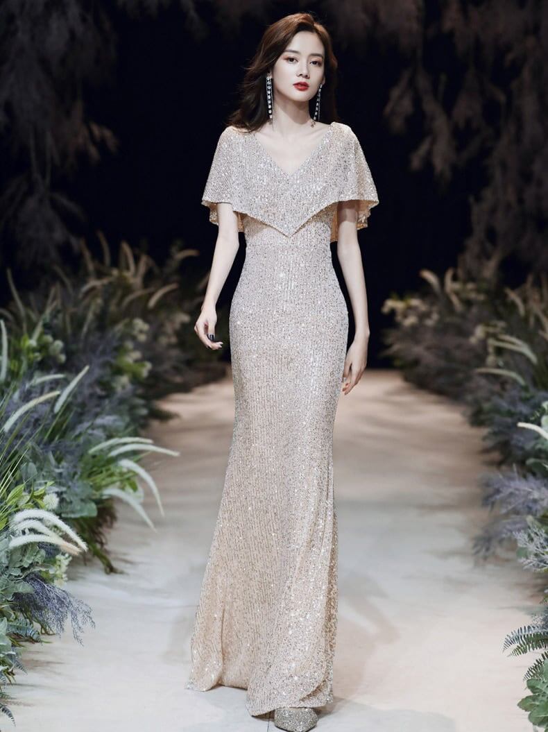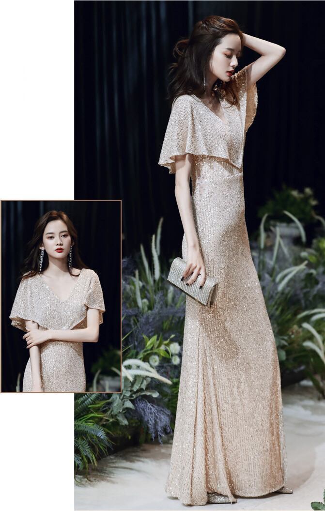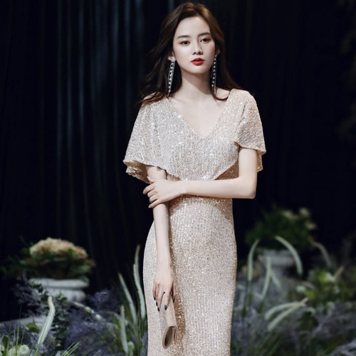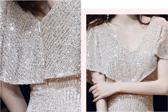 ロングドレス イブニングドレス マキシ丈 Vネック スパンコール キラキラ マーメイド 大きいサイズ レディース エレガント 華やか 上品 発表会 演奏会 パーティー お呼ばれ 結婚式