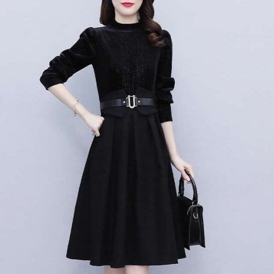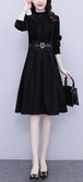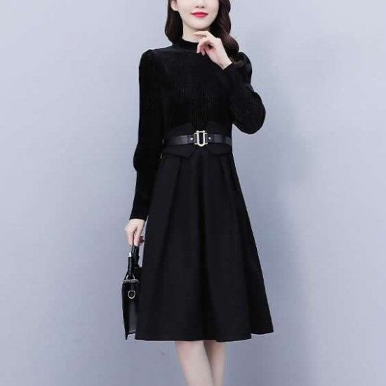 ワンピース ワンピ ドッキングワンピ レディース ひざ丈 長袖 Aライン 大きいサイズ 大人可愛い フォーマル きれいめ 上品 お出かけ デート 女子会 通勤 通学 ハイウエスト