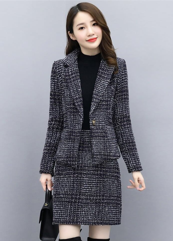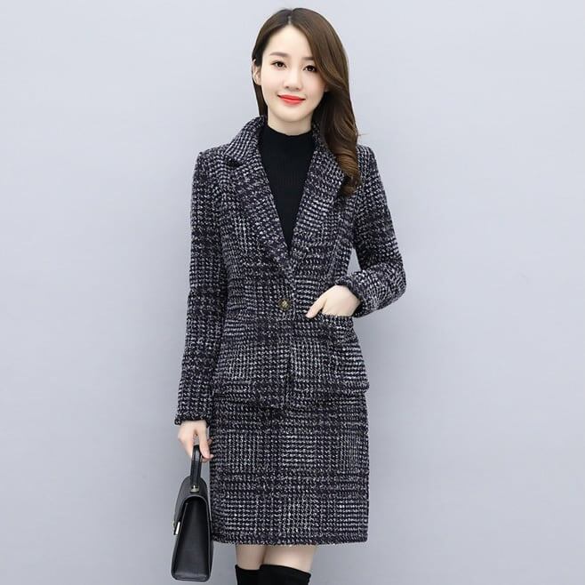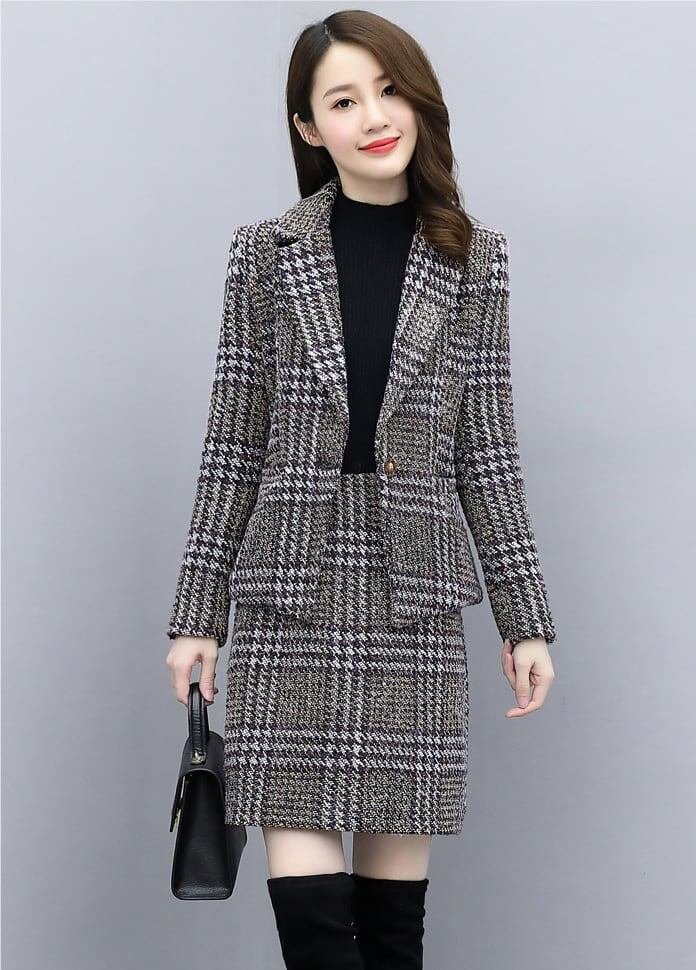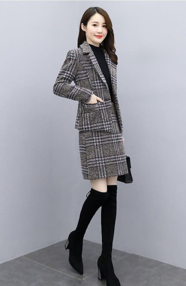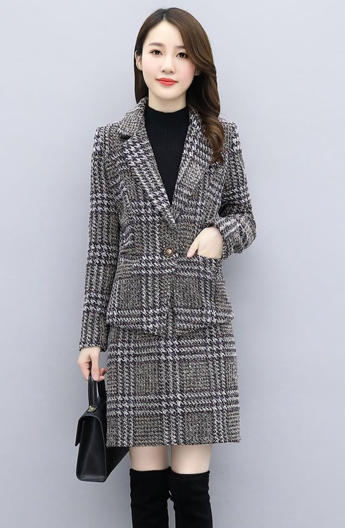 ツイードスーツ セットアップ フォーマル スカート ジャケット 韓国 オルチャン タイトスカート 上品 きれいめ 大きいサイズ チェック 2点セット 大人 スカートスーツ ツーピース