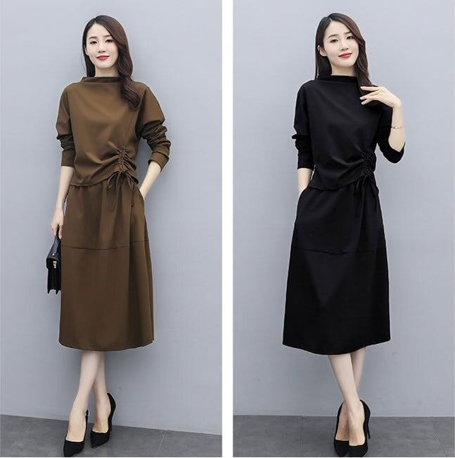 セットアップ カットソー スカート レディース 2点セット 膝丈 上下セット ウエストゴム きれいめ 上品 カジュアル 長袖 韓国 大きいサイズ 通勤 通学