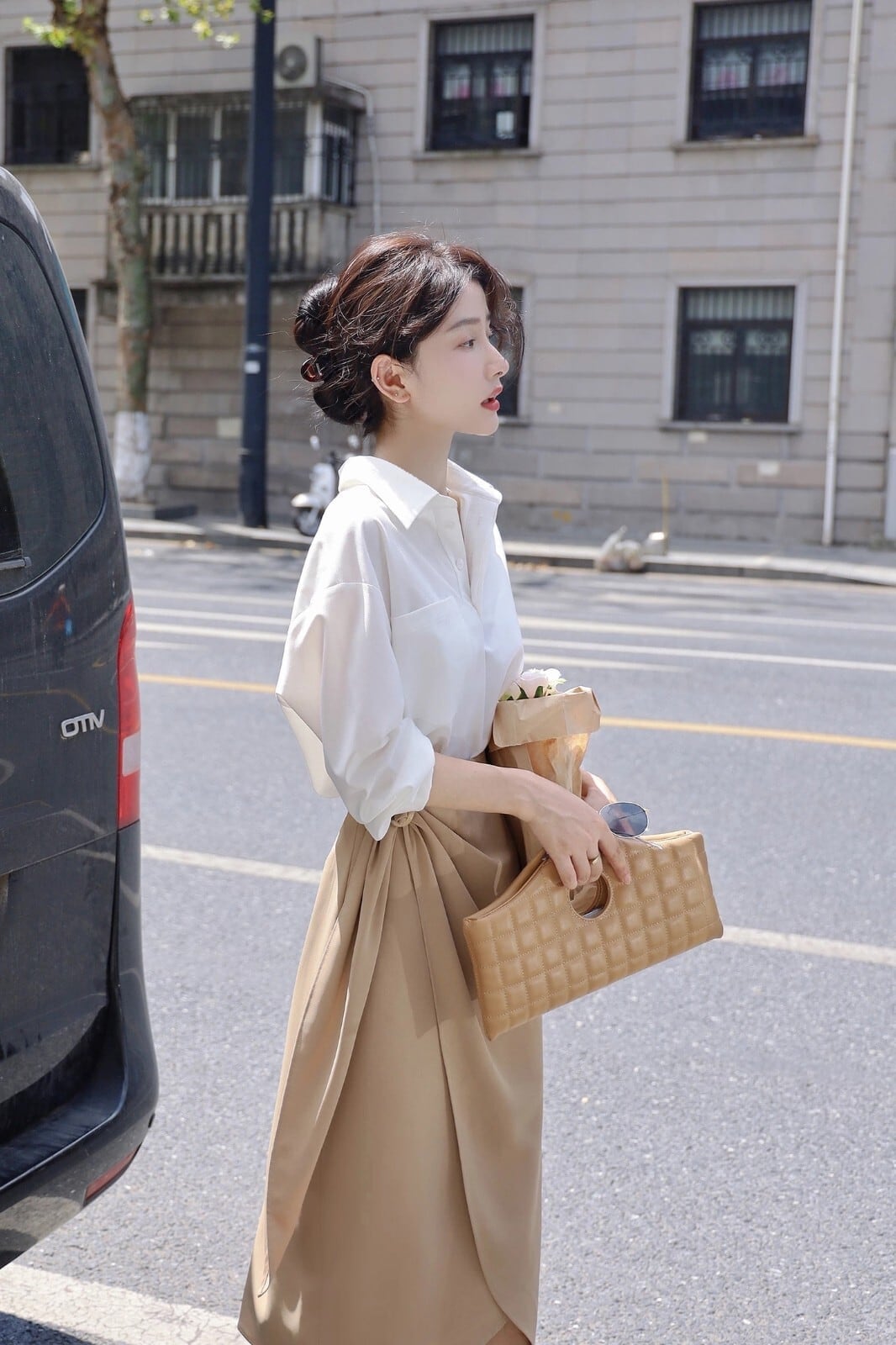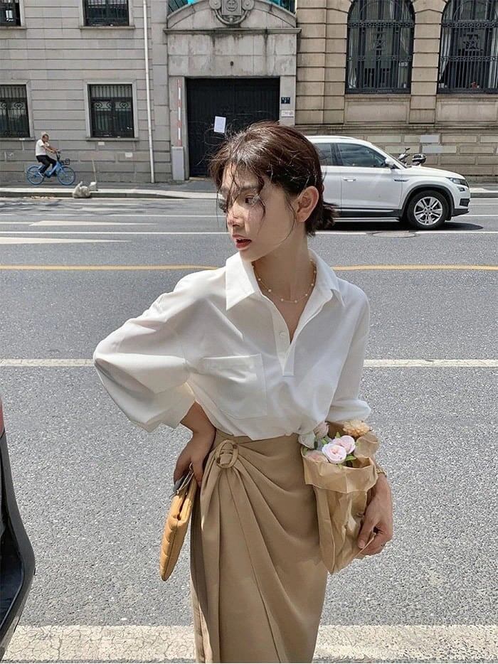セットアップ ブラウス シャツ スカート 上下セット レディース 2点セット 大人可愛い 無地 長袖 膝丈 タイト 大きいサイズ シンプル きれいめ 通勤 通学 オフィス