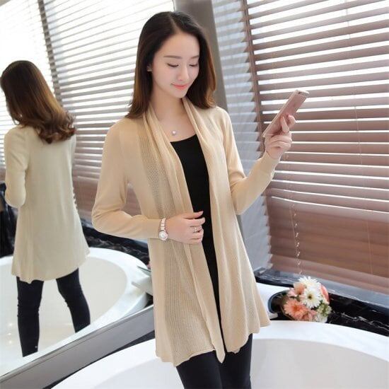 ニットカーディガン 長袖 羽織りロング丈 カジュアル 通勤 通学 オフィス 定番 きれいめ パーティー 二次会 エレガント 韓国 着やせ Vネック 前あき 30代 40代 アウター 部屋着