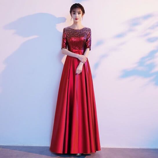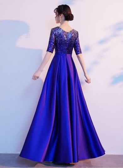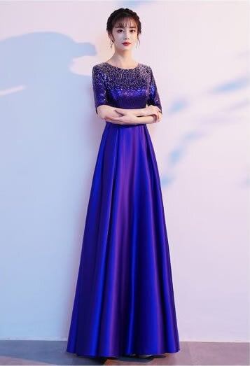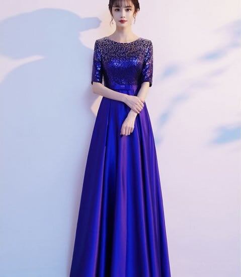 ドレス カラードレス イブニングドレス ロングドレス モエレ丈 5分丈 ウエストマーク 大きいサイズ ロングスカート Aライン ブルー レッド 発表会 演奏会 パーティー お呼ばれ きれいめ 大人