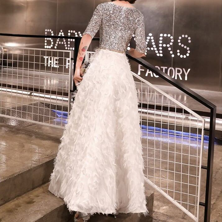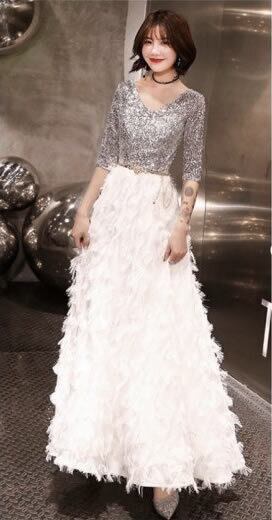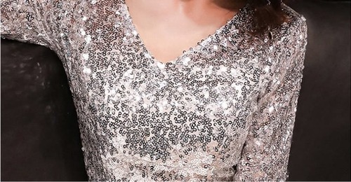 ドレス ロングドレス スパンコール キラキラ 大きいサイズ モエレ丈 Vネック ウエストマーク 派手 華やか 煌びやか エレガント ウエスト切りかえ 5分丈 パーティー お呼ばれ 10代 20代