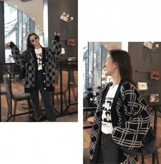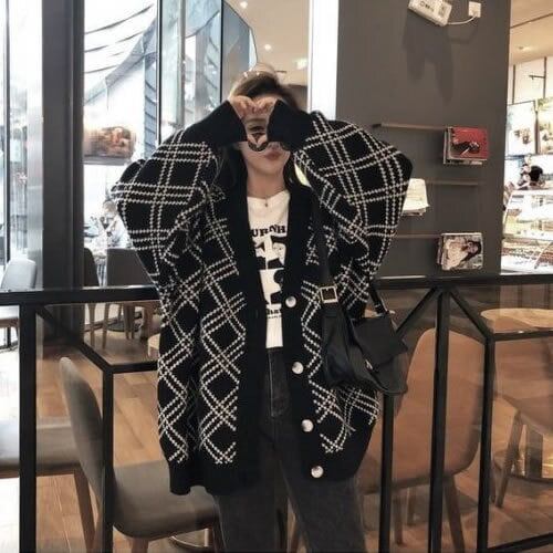 カーディガン ブラック アウター トップス ビックシルエット フリーサイズ ワンサイズ レディース カジュアル トレンド 可愛い 人気 秋冬 あったか 羽織 韓国風 10代 20代 30代