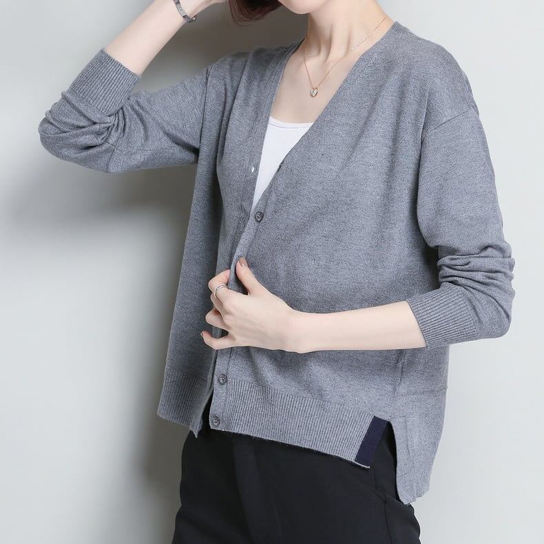 ニット セーター カーディガン 大きいサイズ レディース Vネック シンプル 無地 スリット 長袖 トップス 通学 通勤 オフィス 大人可愛い 定番 人気 大人可愛い 春 秋 きれいめ トレンド