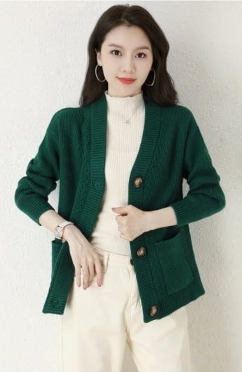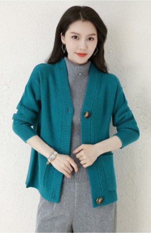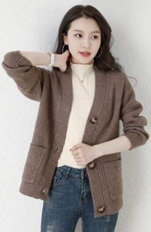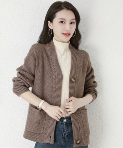 カーディガン レディース 無地 ニット アウター シンプル カジュアル ゆったり 大人 可愛い 前開き ボタン Vネック ショート丈 羽織り 長袖 秋冬 オーバーサイズ