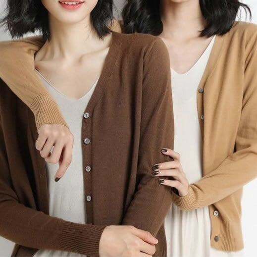 カーディガン ニット シンプル レディース ベーシック 定番 カラー豊富 前開き ボタン Vネック 無地 プチプラ カジュアル オフィス OL 事務服 通勤 長袖 大きいサイズ