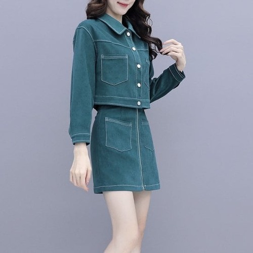 セットアップ スカート ジャケット 2点セット 上下セット ライトアウター ミニスカート ゆったり 大きいサイズ カジュアル ショート丈 長袖 レトロ ステッチ ポケット 韓国