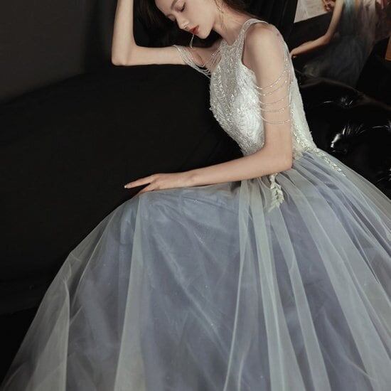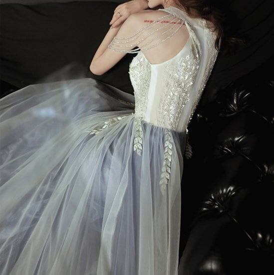 ロングドレス ビーズ 刺しゅう 演奏会 アメリカンスリーブ オーガンジー シフォン イブニングドレス 発表会 カラードレス 大きいサイズ ノースリーブ チュール キレイめ ドレス