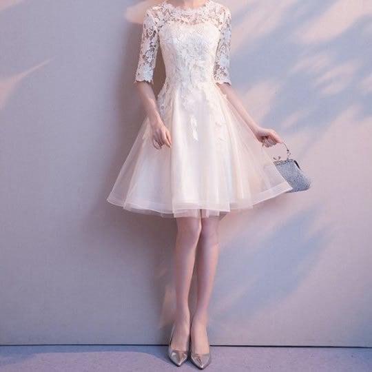 ドレス ワンピース ミニスカート ヘムライン アシンメトリー 袖あり シースルー パフスリーブ 白 パーティードレス Aライン ミニドレス レディース ホワイト 同窓会 発表会 演奏会 大きいサイズ