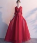 ロングドレス レッド イブニングドレス Aライン レース 刺繍 透け感 チュールスカート 大きいサイズ エレガント Vネック セクシー パーティー 結婚式 ウェディング 発表会 演奏会 派手