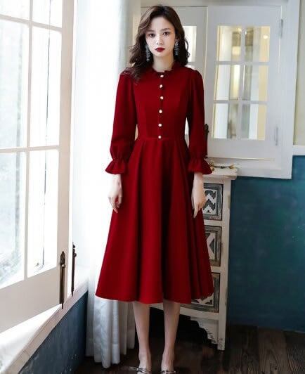 ドレス フォーマル ワンピース ミドル丈 結婚式 披露宴 二次会 30代 40代 発表会 華やか 赤 レッド 大きサイズ 着やせ ピアノ 演奏会 エレガント お呼ばれ パーティドレス セレモニー