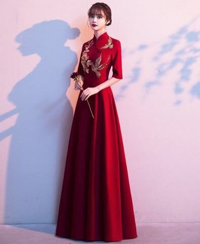 ドレス チャイナドレス フォーマル ワンピース ロング丈 結婚式 披露宴 二次会 30代 40代 発表会 華やか 赤 レッド 大きサイズ ピアノ 演奏会 エレガント お呼ばれ パーティドレス