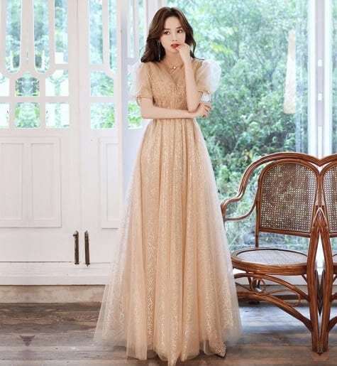 ドレス ロングドレス 半袖 モエレ丈 リボン パフスリーブ 透け感 大きいサイズ パーティー お呼ばれ 発表会 エレガント ゴージャス 可愛い 編み上げ ウエストマーク 可愛い 韓国風 オルチャン