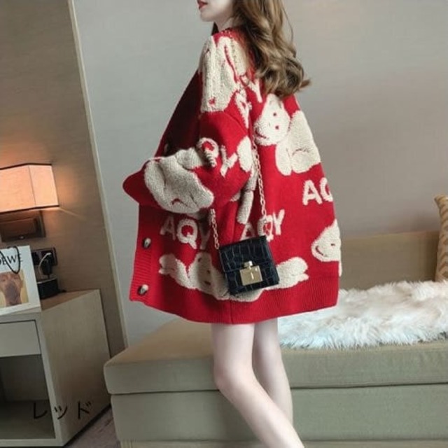 カーディガン アウター ニット レディースファッション 大きいサイズ もこもこ あったか ビックシルエット 派手 アルファベット柄 韓国風 スタイルカバー 細見え 可愛い トレンド 人気 カジュアル