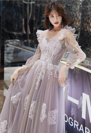 ドレス ロングドレス パフスリーブ レディース マキシ丈 大きいサイズ 長袖 袖あり パーティー 発表会 演奏会 お呼ばれ ゴージャス エレガント 上品 大人 透け感 可愛い ウエディング 韓国風